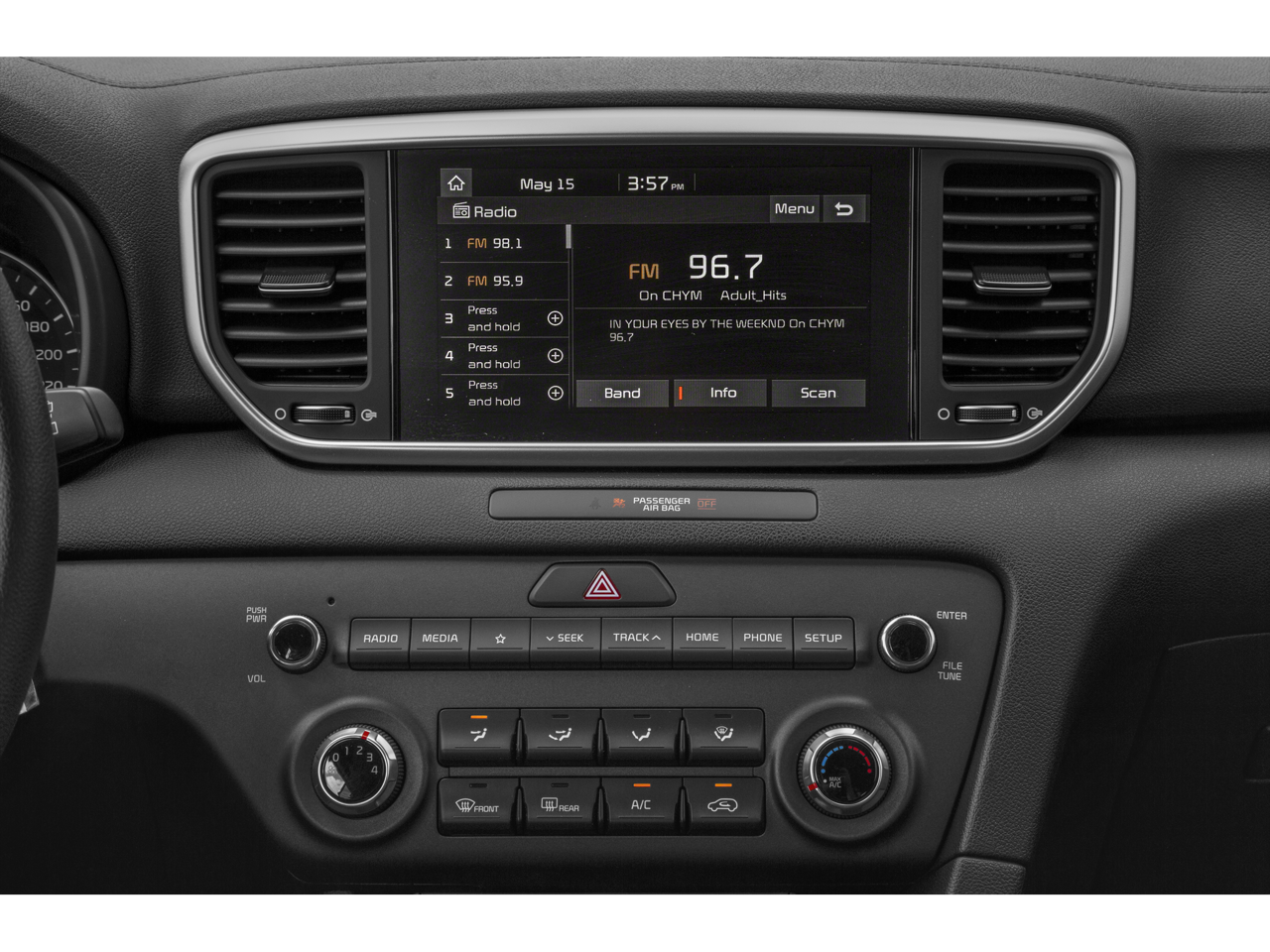 - Radio w/Seek-Scan, Clock, Aux Audio Input Jack, Steering Wheel Controls, Voice Activation and External Memory Control